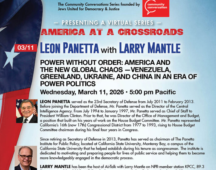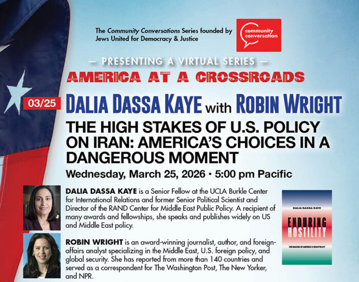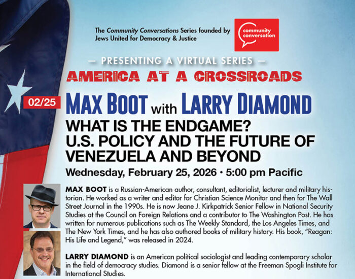 Jews United for Democracy and Justice is a nonpartisan collaboration of people of all faiths, or none, dedicated to combating authoritarianism and preserving democratic principles and justice in America.